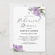 Elegante Hochzeitsdinner mit Aquarellbildervorführung von lila Blume mit Grün. Die Probe ist ein unvergessliches Erlebnis. Ideal für Ihre Hochzeit im Frühling oder Sommer.