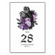 Whimsical Vintage Blütenowls gotische Hochzeitskarten Tischnummer in Akzenten violett angepasst an Ihre Veranstaltung Besonderheiten.