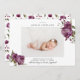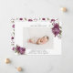 Rustikale Geburtsankündigungskarte mit einem Foto Ihres Neugeborenen mit Aquarellbildern der lila Blume mit Grün.