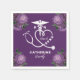 Blumengärtnerische Schule Graduation Party Servietten. Medizinisches Kadukus-Symbol mit herzförmigem Stethoskop. Die Personalisierte Blumenkranke RN Graduationspartei liefert dunklen lila Hintergrund mit lila Goldfloralen des Glitzer. Fügen Sie das Jahr des Abschlusses und den Namen des Abschlusses hinzu.