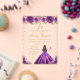 Diese elegante und glamouröse Geburtstagsfeier lädt zu einer hübschen Prinzessin mit brünettem Haar und heller Haut in einem dunklen, lila Ballkleid ein. Der Text kombiniert handgeschriebene Skripte mit modernen serifenlosen Schriftart für ein elegantes und raffiniertes Aussehen. Die Blumenarrangements, Schmetterlinge und Goldkonfetti bilden die perfekte Mischung aus rustikal und schick. Grafiken von www.etsy.com/uk/shop/SunflowerDayLove
