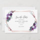 Elegante lila Blumen Rose goldene geometrische Rahmen Blumen Hochzeit speichern Sie die Datumskarte, die Sie leicht mit Ihren Daten anpassen können, indem Sie auf die Schaltfläche "Personalisieren" klicken. Features moderne beliebte Typografie mit Skripttext in schwarz auf weißem Hintergrund TIP: Matching-Produkte erhältlich unten für Ihren Komfort