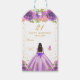 Dieses elegante und glamouröse Geburtstagsgeschenk-Tag kann mit einem Namen personalisiert werden. Das Design ist eine schöne Prinzessin mit dunklem Haar und dunkler Haut in einem lila Ball-Gown. Der Text kombiniert handgeschriebene Skripte mit modernen serifenlosen Schriftart für ein elegantes und raffiniertes Aussehen. Die Blumenarrangements, Schmetterlinge und Goldkonfetti bilden die perfekte Mischung aus rustikal und schick. Das ist ideal für Geschenke und Gastgeschenke. Grafiken von www.etsy.com/uk/shop/SunflowerDayLove