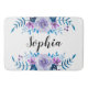 Bathmat mit romantischem Blau & lila Aquarellblumenkonstruktion und individualisierbarem Namen oder Monogramm.