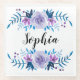 Untersetzer aus Glas mit romantischem Blau & lila Blumenkrautdesign und individualisierbarem Namen oder Monogramm.