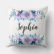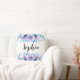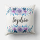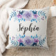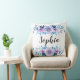 Kopfkissen mit romantischem Blau & lila Aquarellfarbe, Blumenkronen und individualisierbarem Namen oder Monogramm.
