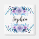 Magnet mit romantisch blauen & lila Aquarellfarben, Blumenkronen und individualisierbaren Namen oder Monogramm.