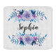 Glasschneidebrett mit romantischer blau & lila Aquarellkronenkonstruktion und individualisierbarem Namen oder Monogramm.