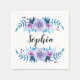Papierservietten mit romantischer blau-lila Aquarellblumenkonstruktion und individualisierbarem Namen oder Monogramm.