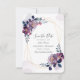 Niedliche, moderne, trendige, florale rustikale Save the Date Budget-Karte können Sie leicht anpassen, indem Sie oben auf die Schaltfläche "Personalisieren" klicken. Lila und dunkelblaue Blume mit einem geometrischen Rahmen aus Goldfolie und Schrifttyp