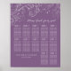 Dieses elegante Hochzeitstisch-Sitzdiagramm zeichnet sich durch ein zartes blumengeschmücktes Dekor mit Blume, Vögeln und Blätter auf einem staubigen lila Hintergrund aus. Der Text kombiniert handgeschriebene Skript- und Serif-Schriftart für ein stilvolles und modernes Aussehen. Ideal für eine Hochzeit im Herbst im Winter oder Herbst.