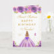 Diese elegante und glamouröse Sweet-Sixteen-Geburtstagskarte kann mit einem Namen oder Titel wie Tochter, Enkelin, Nichte, Freundin usw. personalisiert werden. Das Design zeigt eine schöne Prinzessin mit blondem Haar und heller Haut in einem lila Ballkleid. Der Text kombiniert handgeschriebene Schrift und moderne serifenlose Schriftarten für ein klassisches und anspruchsvolles Aussehen. Die Blumenarrangements, Schmetterlinge und goldenes Konfetti schaffen die perfekte Mischung aus rustikal und chic.