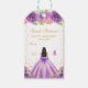 Dieses elegante und glamouröse 16 . Geburtstag Geburtstagsgeschenk-Tag kann mit einem Namen personalisiert werden. Das Design ist eine schöne Prinzessin mit dunklem Haar und dunkler Haut in einem lila Ball-Gown. Der Text kombiniert handgeschriebene Skripte mit modernen serifenlosen Schriftart für ein elegantes und raffiniertes Aussehen. Die Blumenarrangements, Schmetterlinge und Goldkonfetti bilden die perfekte Mischung aus rustikal und schick. Das ist ideal für Geschenke und Gastgeschenke. Grafiken von www.etsy.com/uk/shop/SunflowerDayLove
