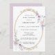 Weiche, lila Rose und lila Lilacs schaffen zwei weiche Blumenarrangements, die einen eleganten matten Goldrahmen schmücken. Offene goldene Rose und Blätter schaffen einen leichten und luftigen Effekt. Offene Zeichnungen sind einer der heißesten Design-Trend dieses Jahres. Die Rückseite der Einladung ist weich lila.