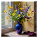 Die Lila Blütenkunst von Blue Yellow bringt Ruhe in jeden Raum mit dieser stilvollen Aquarellblüte, die mit einer Vase von Blume in ruhigem Blues, Gelb und Purpur aufwartet. Ideal für Wanddekoration.