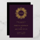 Gold Foil Pressed Dark Lila Celestial Monogram Wedding Save the Date Card mit Ihrem Monogramm in einer geometrischen Sonne zeichnend, elegante Typografie und ein schwarzer Backer. Alle Farben können geändert werden.