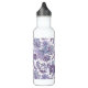 Maßgeschneiderte, bedruckte Wasserflasche mit einem skurrilen Blumenmuster in lila-weiß-Farbtönen. Personalisieren Sie es mit Ihrem Monogramm Initial in einem dunklen Pflaumenrahmen. Verwenden Sie die Entwurfswerkzeuge, um die Textfarben und Schriftart zu bearbeiten und eigene Fotos hinzuzufügen, um ein Design zu erstellen.