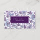 Kostengünstige, individuell bedruckte Visitenkarten personalisiert mit Ihrem Namen und Kontaktdaten. Dieses elegante Design besticht durch einen lila, Vintagen Blumenhintergrund. Verwenden Sie die Entwurfswerkzeuge, um den Text mit beliebigen Schriftart und Farben zu bearbeiten. Ändern Sie die Hintergrundfarbe oder laden Sie Ihre eigenen Bilder hoch, um eine ganz persönliche Visitenkarte zu erstellen, die Ihren Stil und Ihre Persönlichkeit widerspiegelt. Karo in unserem Geschäft für eine bessere Koordination von Bürobedarf und Bürobedarf.