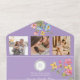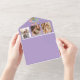 Genießen Sie Romantik mit dieser lila Boho-Wildblume in einer Hochzeitseinladung. Mit lebendigen Blumenbildern, einem QR-Code für UAWG und einem individuell gestaltbaren Foto ist es perfekt für Hochzeiten im Garten, in der Natur oder im Freien. Öko-freundliches Design ohne Umschlag.