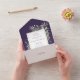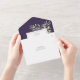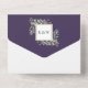 Alle in einer Hochzeitseinladung mit eleganten botanischen Aquarellfarben-Blätter auf lila Hintergrund und einem schicken goldenen Rahmen. Die Einladung enthält eine perforierte RSVP-Karte, die für Sie individuell adressiert oder links als leere Adresse für die Handschrift der Adressdaten Ihres Gastes verwendet werden kann. Entwickelt von Thisisnotme©