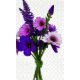 Violett mit Lavendel und verschiedenen Petunien, mit grünen Stielen und Blätter. Die Blume sind in verschiedenen lila Farbtönen gehalten, wodurch eine lebhafte und farbenfrohe Komposition vor einem transparenten Hintergrund entsteht.