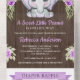Lila Bow Floral Elephant Barn Wood Baby Dusche All In One Einladung
