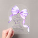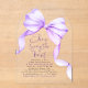 Leichte Lila Bow "She’s Tying the Knot" Akryllische Brautdusche Einladungen. Elegant, feminin und mühelos modern - diese durchsichtigen und leichten lila Acryl Braudusche-Einladungen bringen eine luxuriöse Touch zu Ihrem besonderen Fest. Mit ihrer kristallklaren Oberfläche und dem zarten Aquarellbogen in weichen Lavendeltönen verbinden sie zeitlose Romantik mit zeitgenössischem Charme. Das anmutige Bugmotiv ist ein sanfter, symbolischer Knoten an das bevorstehende "Ich" der Braut und macht jede Einladung nicht nur zu einem Stück Schreibwaren, sondern zu einem Schatz. Ob Sie eine raffinierte Gartensoirée oder einen schicken Brunch mit den Girls planen, dieses Design Set den Ton für einen Tag voller Liebe, Lachen und schönen Anfängen.