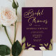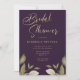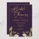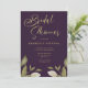 Klassische schicke Imitate Goldkalligraphie Drehbuch moody dunkle lila Brautdusche Einladung mit botanischem Garten Aquarell neutrale Weise grün Blattwerk. ++++++ Geeignet für elegante Brautparty-Feiern im Vintagen Stil.