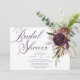 Elegante Brautduscheinladung mit maßgeschneiderter Schrifttyp und prächtigen Aquarellfarben, lila und goldene Blume in einem lockeren Bouquet.