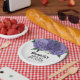 Lila Brautparty-Papierplatte für Blumenviolett Pappteller