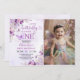 Lila Butterfly Boho Blume 1. Geburtstag Foto Einladung