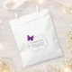 Hübsche Gastgeschenk Hochzeit Taschen mit Grafiken eines lila Schmetterlings, die einen lila whimsical doodle gerahmten Textbereich dekorieren. Personalisieren Sie den Text, um zu lesen, was Sie gewollt haben. Ideal für alle Gastgeschenk Hochzeiten, die Sie brauchen.