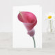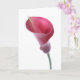 Dieses ist eine lila Callalilienkarte mit einem weißen Hintergrund. Callalilien werden auch Arumlilien oder -schweine Ohren genannt. Der botanische Name ist Zantedeschia (Klasse). Callas kommen in eine Vielzahl von Purpur… vom dunklen Rosa zu einem sehr dunklen Lila. Der Code für dieses Bild ist 8921.