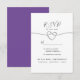 Einfache, elegante Kalligraphie-Skript, minimalistisch lila Hochzeitskarte RSVP mit Auswahl der Mahlzeiten, Imitate silberne Seile Herz.