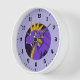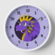 Uhr mit Illustration niedlicher lila und gelber Drachenmädchen / Märchen-Design für Kinder in schwarzem Kreis , Kinderdesign von Maxi Harmony,