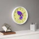 Uhr mit lila Drachen, niedlicher Cartoon, illustriert von Maxi Harmony
