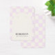 Ohrring-Grafikkarte mit einem niedlichen lila karierten Muster. Vorlagenlöcher können angepasst oder gelöscht werden, sowie alle Ihre Firmeninformationen. Fügen Sie Ihre Social Media oder Webseite ganz unten hinzu.