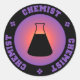 Chemist - lila, schwarzer und roter Aufkleber mit kollegialer Schrift und Erlenmeyer-Flasche.
