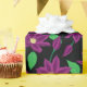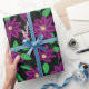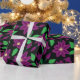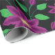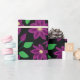Dieses Design zeichnet sich durch lila Clematis-Blume aus, die das Muster auf schwarzem Hintergrund wiederholen.