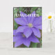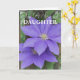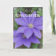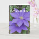 Ein schönes Foto Grußkarte einer lila Clematis Blume, die auf einem Holzzaun wächst. Eine hübsche Blumenkarte für Ihre Tochter am Muttertag!