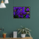 Herrliche lila und magentafarbene Blüten füllen dieses Plakat. Die goldgelben Farbtöne werden von den kräftigen violetten Farbtupfern und den grünen Blätter, die von hinten durch den flüchtige Blick hindurch sichtbar werden, zum Set.