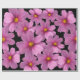 Ein Foto einer lila Kosmos-Blume mit gelbem Mittelschnitt und platziert in einem zufälligen Muster auf einem schwarzen Hintergrund. Sie können die Hintergrundfarbe auf das ändern, was Sie wollen. Es ist die gleiche Blume, die unterschiedlich groß und gedreht und oft platziert ist, um ein natürliches Aussehen zu erzeugen. Dieses Foto wurde in einem Freundesgarten in Massachusetts aufgenommen. Original Fotografie Copyright 2008 von Karen Coffelt.