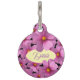 Lila Cosmos-Blume-Design auf schwarzem Hintergrund Haustiermarke