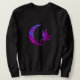 ein dekoratives Kunstwerk eines Halbmonds mit einem geflügelten Einhorn, das an seinem Rand stehend ist und in surrealen lila Farben auf einem Sweatshirt abgesetzt werden kann.