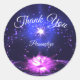 Fügen Sie Ihrem Kunsthandwerk und Ihrem Party etwas Schönheit und Eleganz mit Geschenkaufklebern und Etiketten hinzu - Lila Kristalllotus-Blume, die in den Himmel strahlt - glänzend auf einem hellen Stern - für Ihr Schreibwarenzubehör. Personalisieren Sie mit jedem Namen, jeder Nachricht, jedem Zitat oder was auch immer Sie wünschen. Ändern Sie "Danke" zu jedem Ereignis. Eine gute Idee, um Geschenke zu kennzeichnen. Klassische Rundaufkleber für vielfältige Verwendungszwecke; Umschlag Aufkleber. Geschenktafeletiketten, Verpackungspapieraufkleber usw.