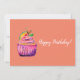 farbenfrohe Gestaltung einer lila Cupcake Deluxe auf einer pfirsichfarbenen Geburtstagskarte