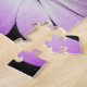 Dieses phantastische Rätsel enthält ein wunderschön detailliertes Foto einer afrikanischen, verschlafenen Blume. Das Foto wurde digital verändert, was zu einer hübschen lila Blume mit verschiedenen lila Farbtönen auf den Blättern und einem dunklen lila Zentrum führt.