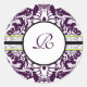Lila Damask Anfangsbuchstabe R Hochzeit Runder Aufkleber