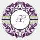 Lila Damask Anfangssticker Letter X Hochzeit Runder Aufkleber