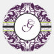 Lila Damask Initialsticker Letter G Wedding Runder Aufkleber